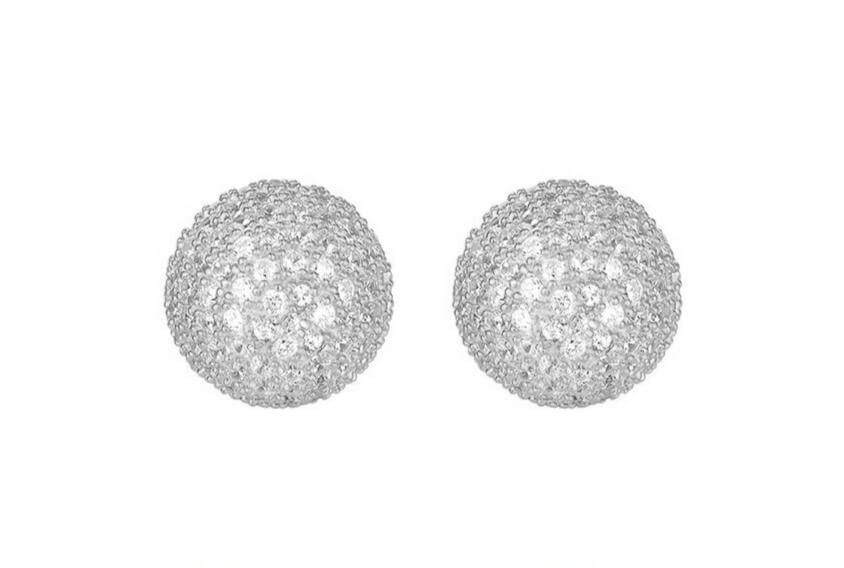 Topos en forma de esferas hechos en plata 925 con enchape en oro de 24k, oro rosado o rodio y con engaste de mini circones.