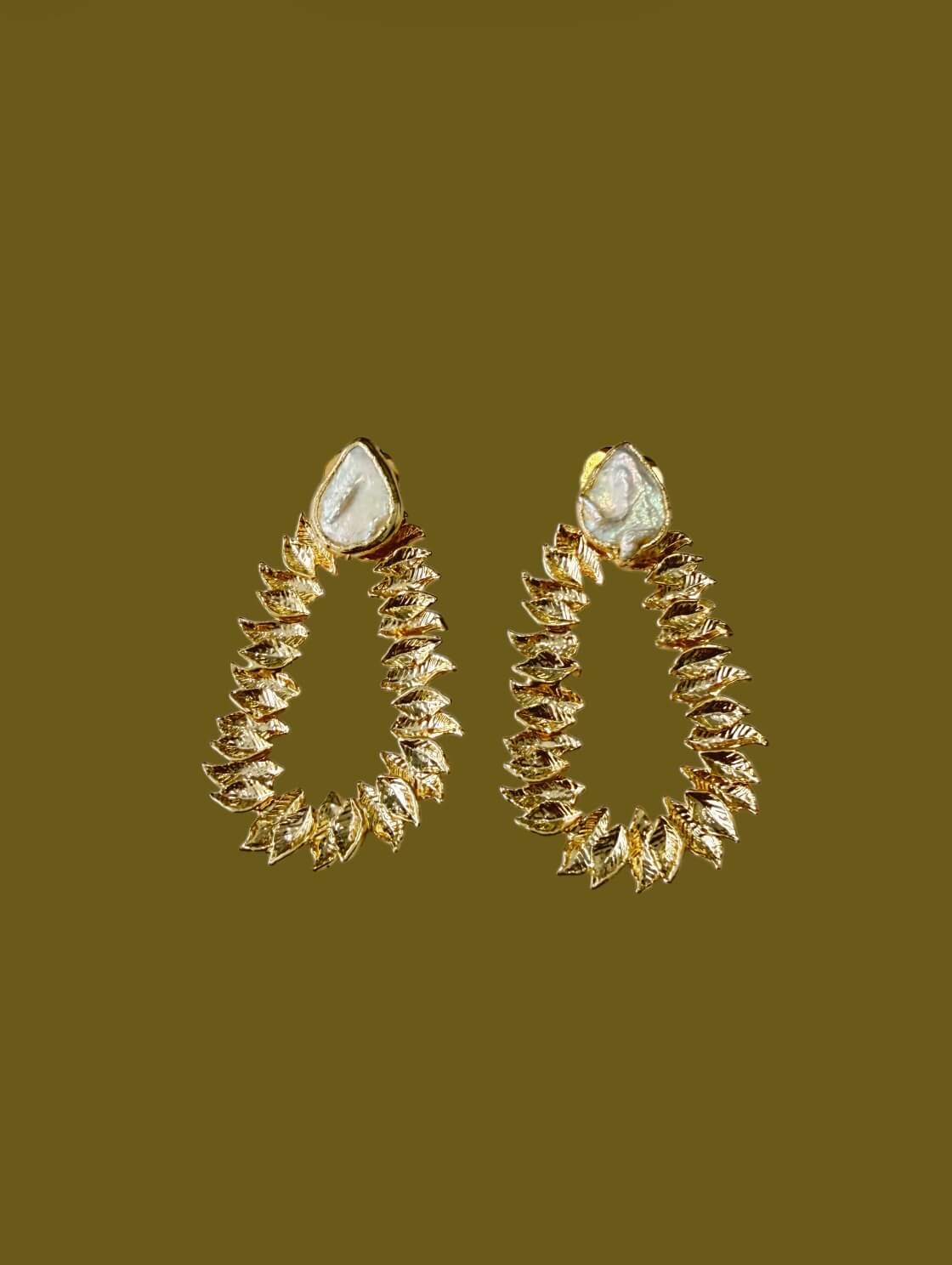 El clásico actualizado: perlas cultivadas sobre bronce enchapado en oro 24K.