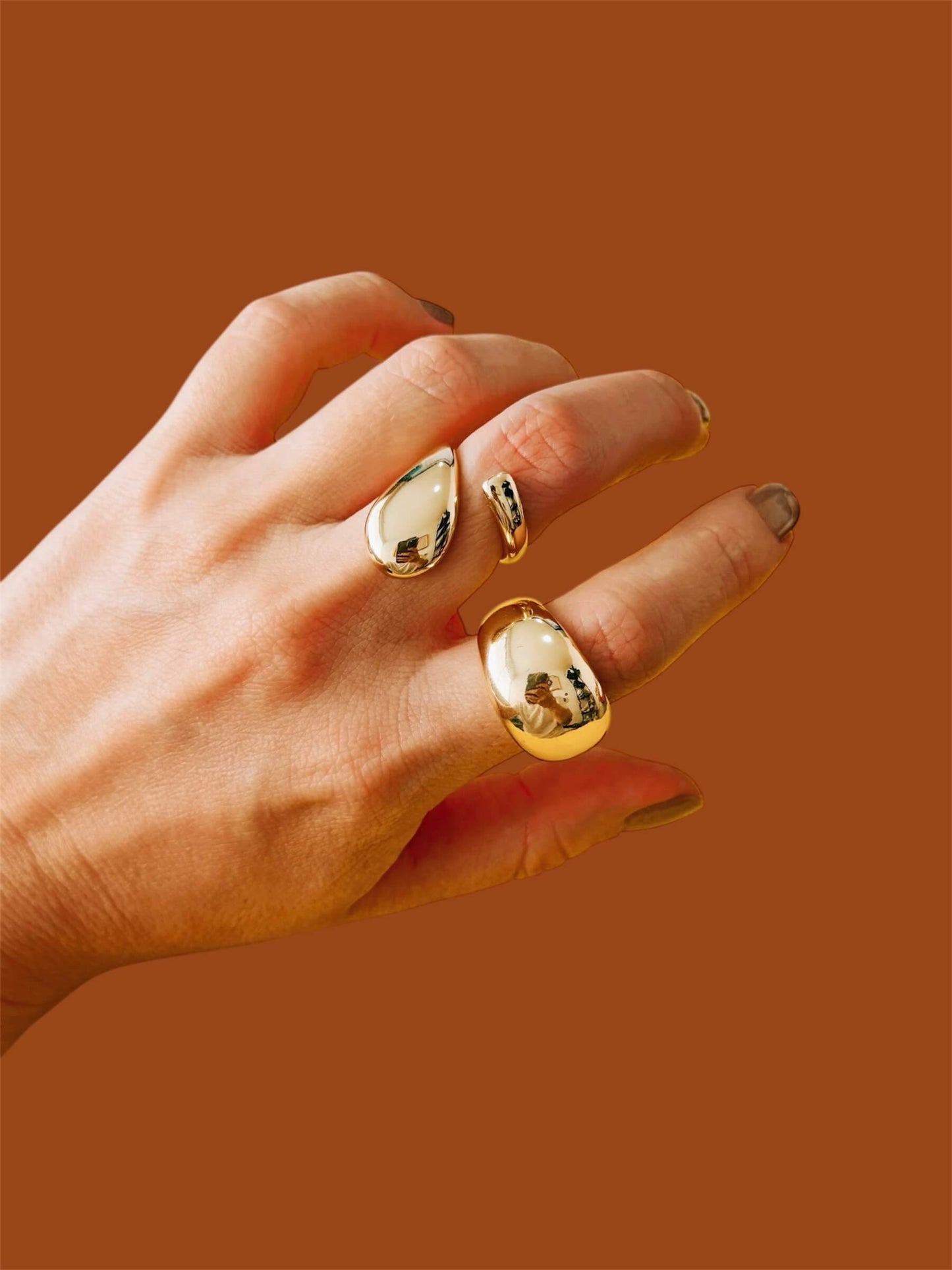 Anillo en rodio con enchape en oro de 24k. Su forma orgánica envuelve el dedo con la fluidez de una espiral, como un movimiento que no se detiene. Liviano, versátil y lleno de carácter.