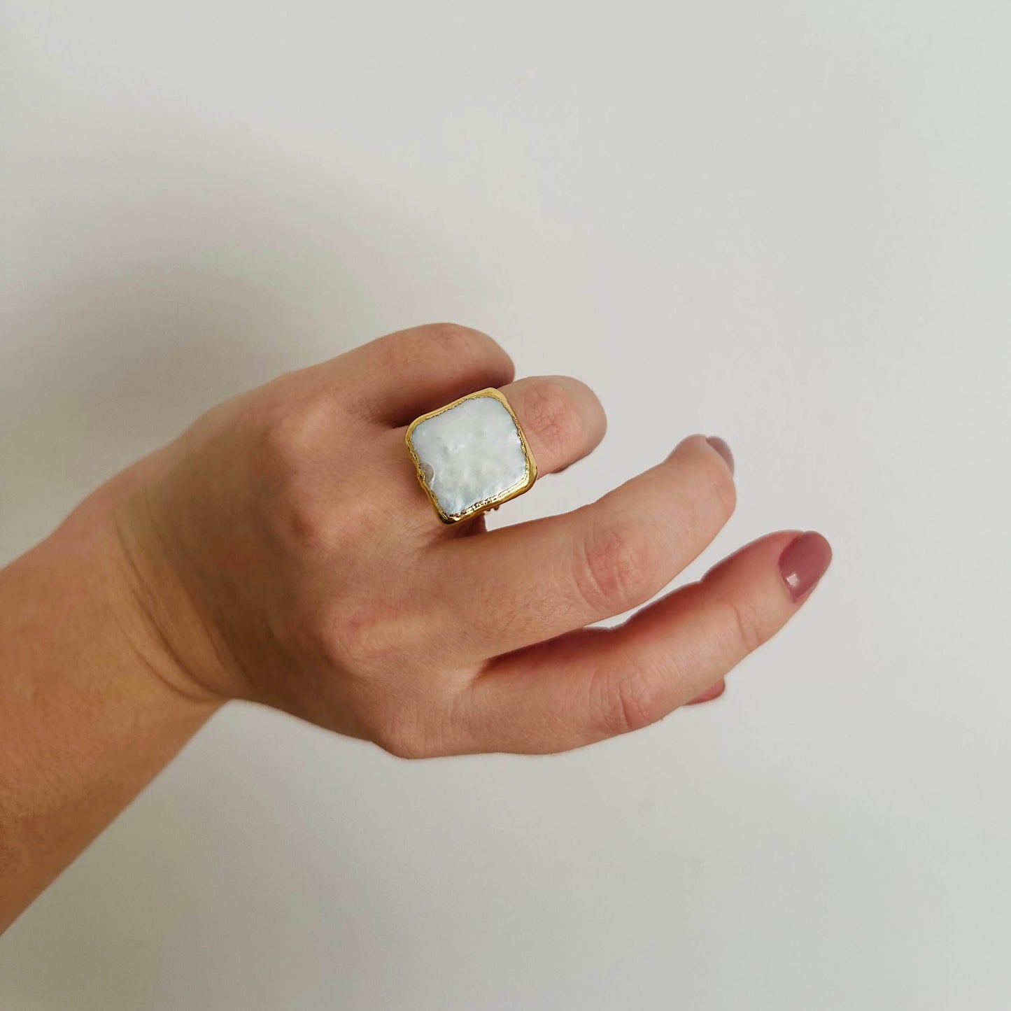 Anillo hecho a mano de bronce con enchape de oro de 24k y perla japonesa cultivada engastada.