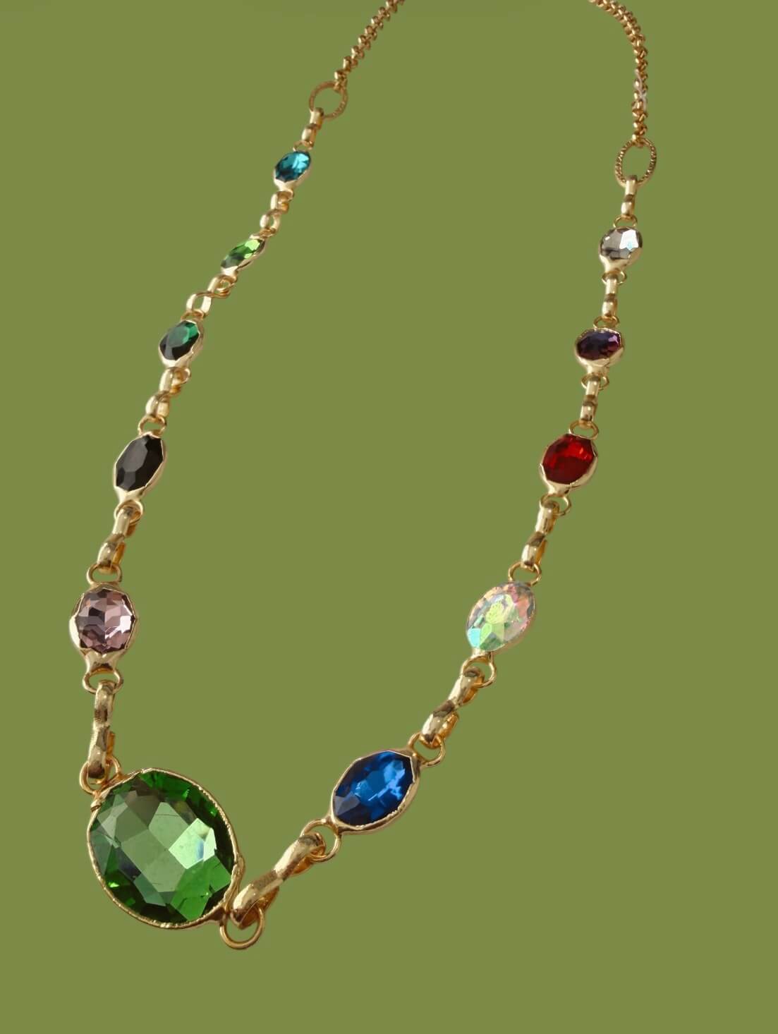 Un pop de color en cada movimiento: piedras multicolor y bronce con enchape en oro 24K.