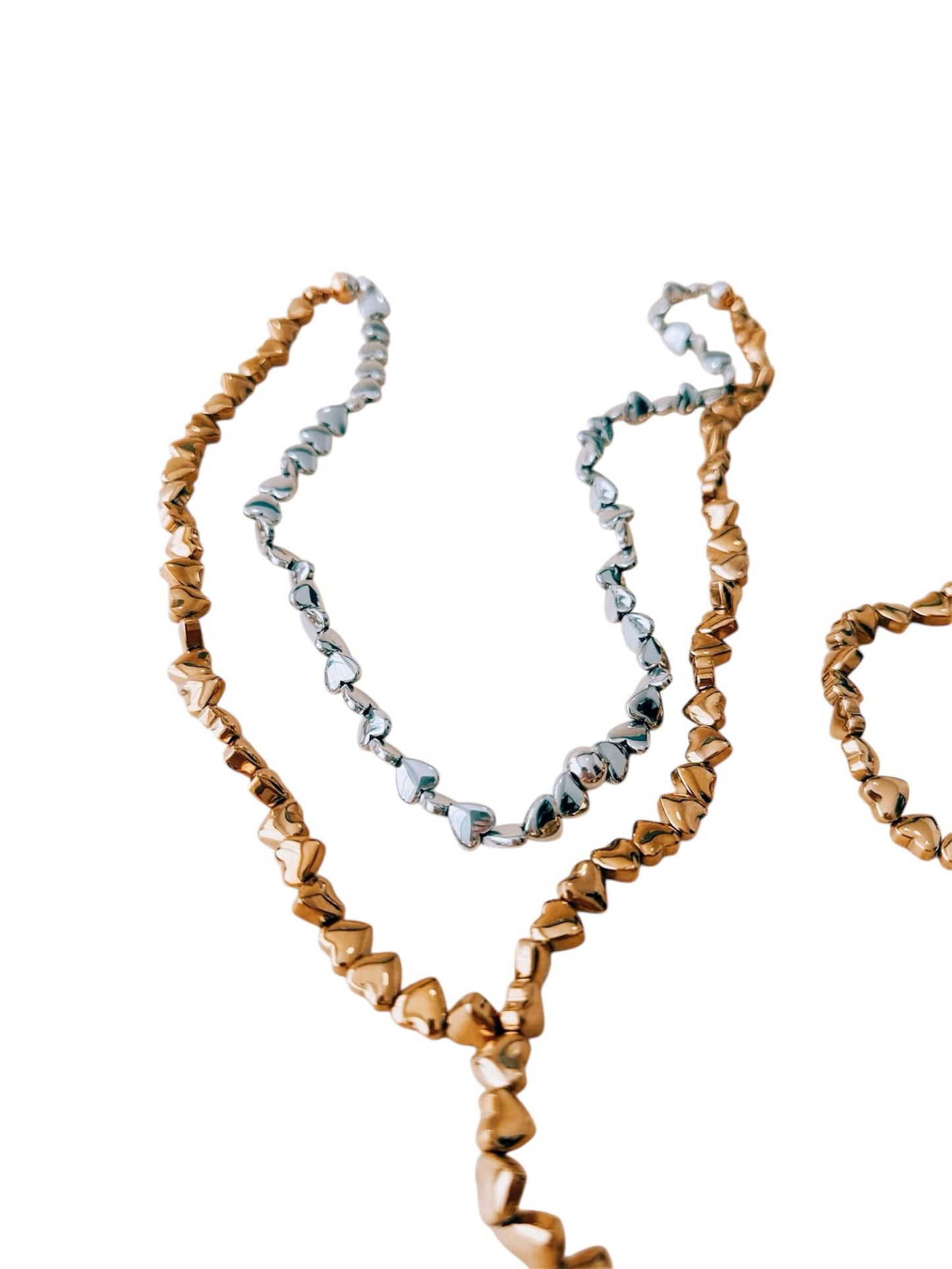 Collar de corazones en acerina plateada, con un broche imantado que une cada latido con estilo.