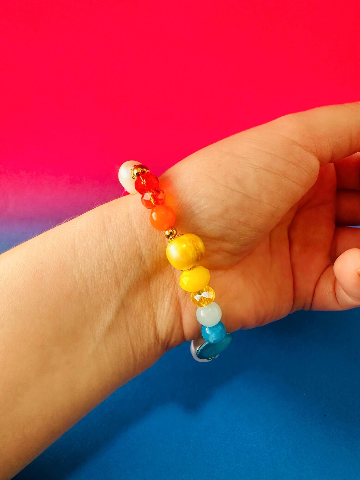 Pulsera hecha a mano con mix&match de piedras semipreciosas ( nacar,agathas, cristales), perlas cultivadas y dije relicario en forma de corazón con arabescos.