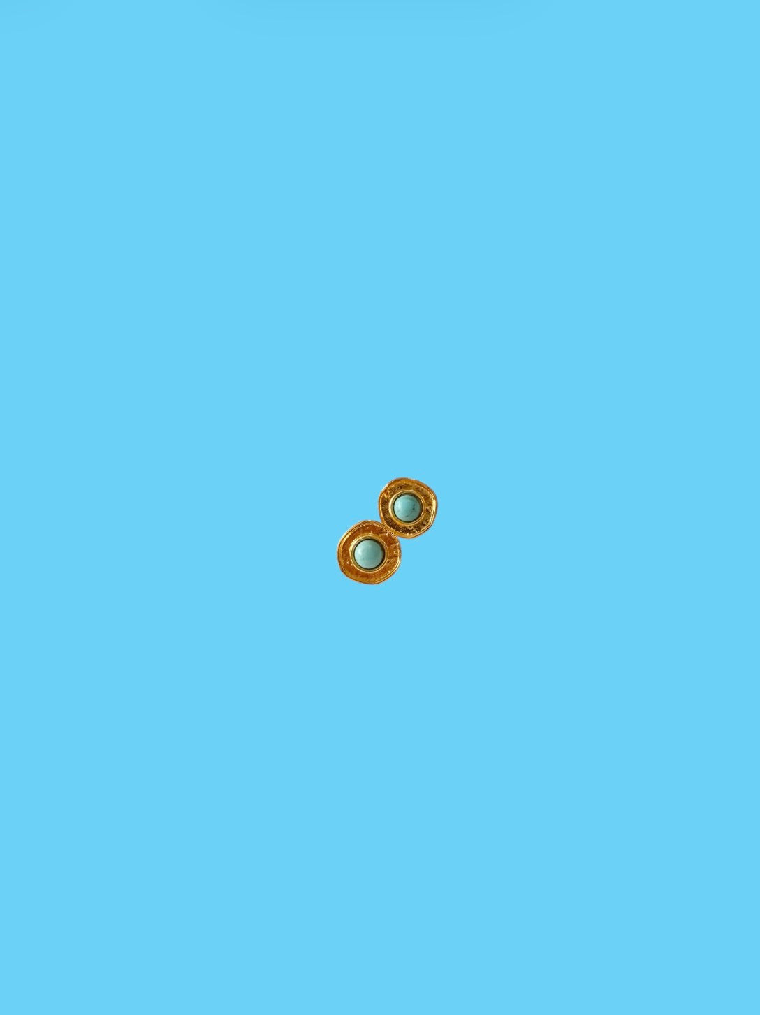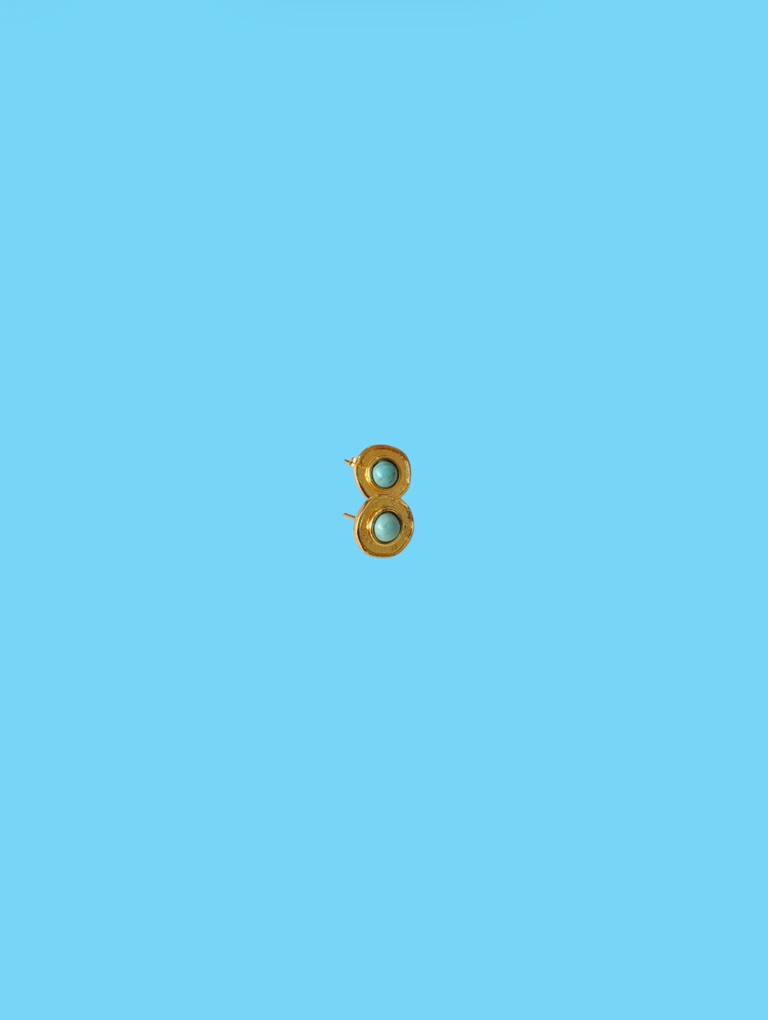 Mini mini topos elaborados en bronce con enchape en oro de 24K, con turquesa central que aporta un toque sutil de color. Un diseño delicado y sofisticado, ideal para usar todos los días.